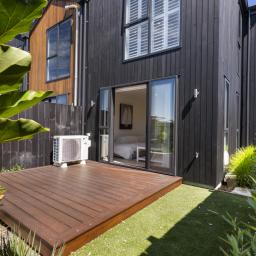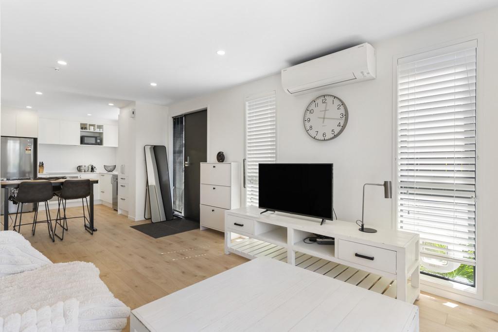 Built by Mike Greer Homes in 2024, this superbly positioned modern 2-bedroom townhouse enjoys a coveted end-of-row setting in the heart of Beachlands. Tucked neatly at the end of the lane, it offers added privacy, extra natural light, and a sense of space that sets it apart from the rest.