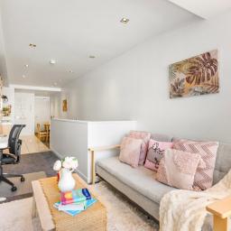 The lower level offers a double bedroom and bathroom, ideal for unwinding at the end of the day. Upstairs from the entrance, the kitchen and dining area flow naturally to the lounge, complemented by an additional study space well suited for working from home or creating extra versatility.