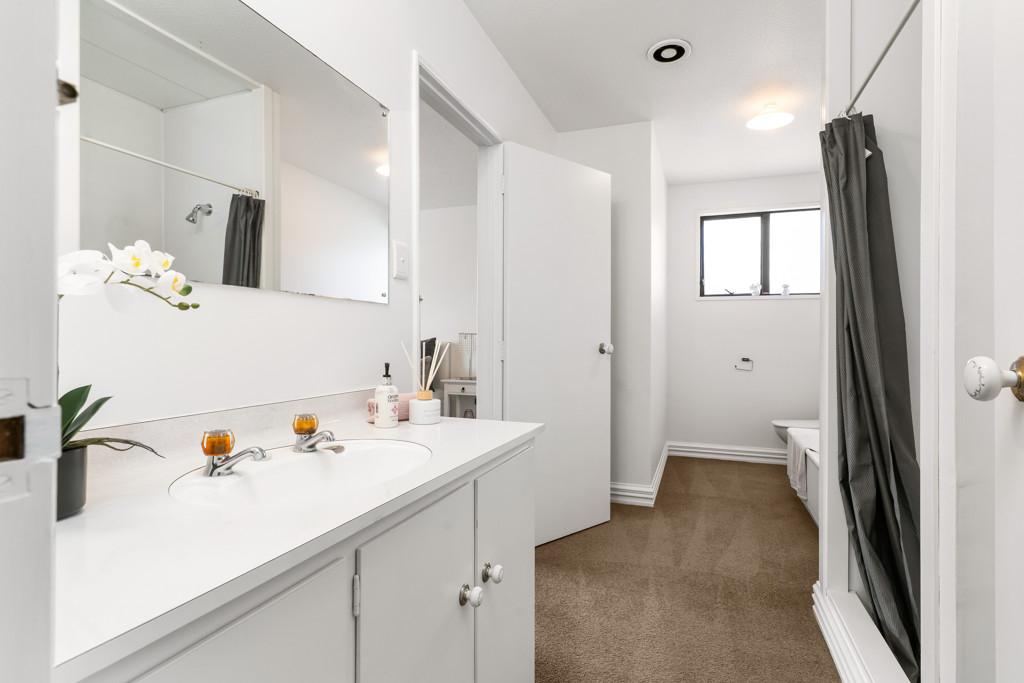 Two generous double bedrooms are supported by a practical layout, including a well-appointed main bathroom with a separate bath and shower, and direct access from one of the bedrooms. A separate guest toilet and dedicated laundry further elevate everyday convenience.