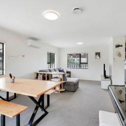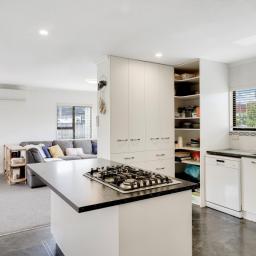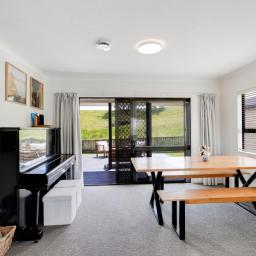 The heart of the home is the light-filled living area, complete with a heat pump for year-round comfort. An HRV system ensures the home stays dry and healthy through every season.