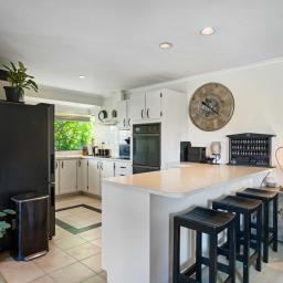 The home features four generously sized double bedrooms and two bathrooms. Three of the bedrooms have ranchsliders opening to the outdoor area enhancing light, space, and accessibility. Outside, mature trees and established gardens in an idyllic and tranquil setting completes the picture, offering privacy and a sense of serenity. Pick fruit from the citrus trees, including grapefruit, tangelo, and mandarin as a delightful bonus. All within a fully fenced yard providing safety for children and pets.
