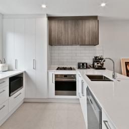 • Modern open-plan kitchen with quality SMEG appliances, large benchtop with ample storage.