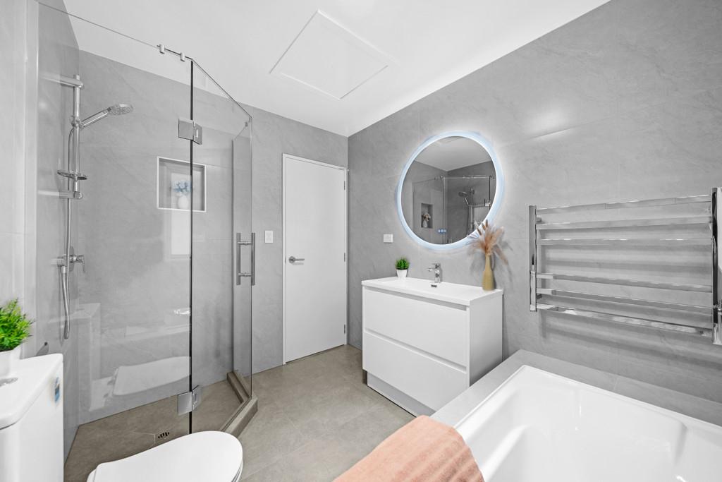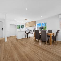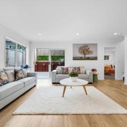The heart of the home is a generous open plan lounge and dining area that flows seamlessly out to a sunny, private deck - ideal for weekend BBQs or quiet morning coffees. The kitchen is fitted with quality Bosch appliances and gas cooking, making it a joy for any home chef. A standout feature of the ground floor is the double bedroom with ensuite and walk in wardrobe - perfect as a guest suite, home office, or accessible retreat for extended family.