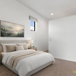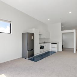 Inside, the script is flipped to pure, clean lines. A high-stud ceiling gives the open-plan living area a sense of scale rarely found in one-bedroom builds, while the sharp, monochromatic kitchen-anchored by dark tiled flooring-is ready for everything from morning espresso to late-night entertaining. The layout is smart and functional, featuring a plenty of living space for your lifestyle needs and a crisp, white-on-white bathroom with integrated laundry for ultimate convenience.