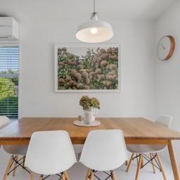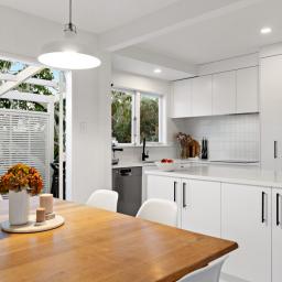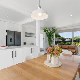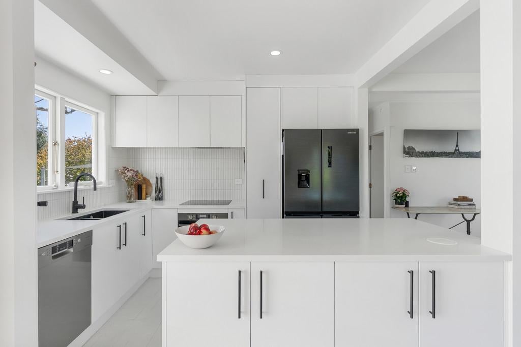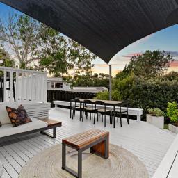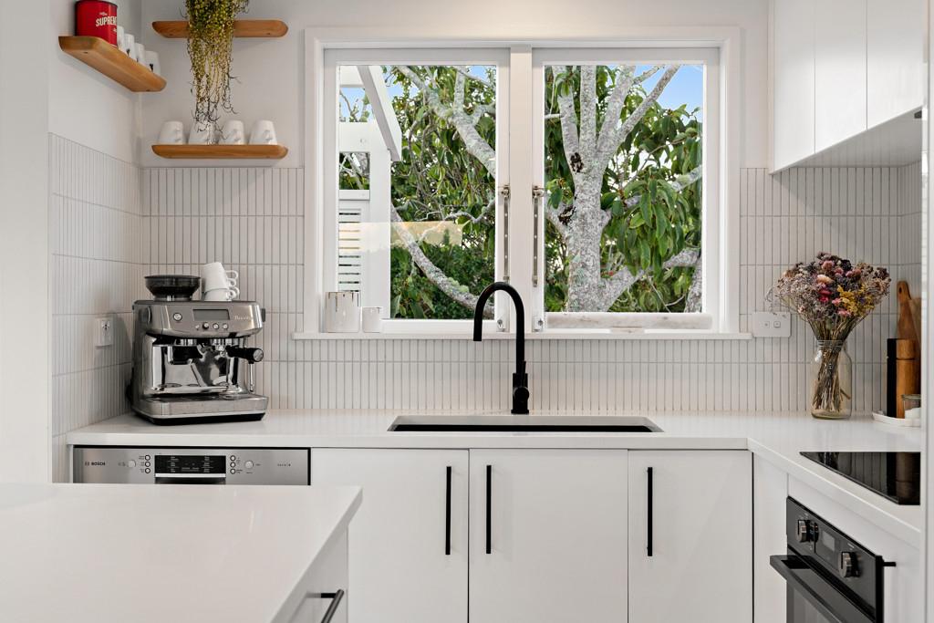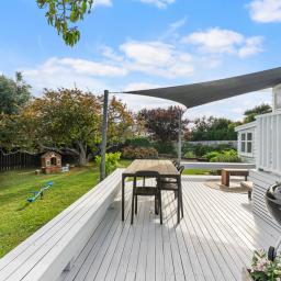 The kitchen is a chef's dream, featuring stone benchtops and timeless simplicity. Striking, white, wooden floors ground the home. The French doors flow effortlessly to the generous (multi-level, north-facing) deck. The perfect spot to enjoy a glass of wine, BBQ, entertain family and friends, and watch the kids play in the summer sun or dusk glow.