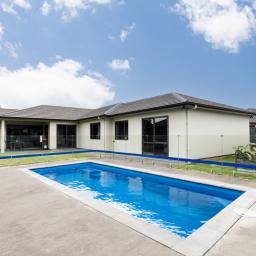Outdoors, a beautifully positioned in-ground saltwater swimming pool anchors the fully fenced, low-maintenance section, offering space for relaxation and enjoyment for the whole family.