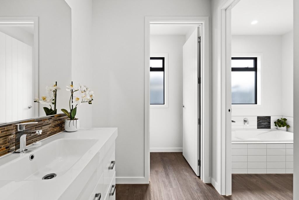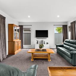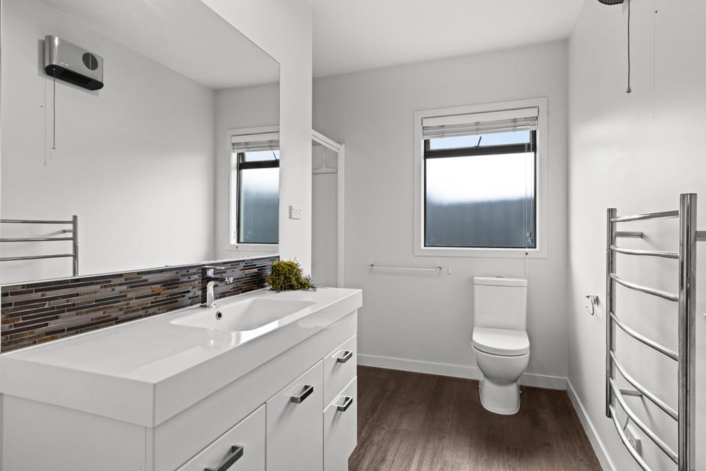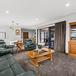 Practicality is paramount, with a double integral garage enhanced by attic storage, a separate laundry, and a walk-in storage cupboard. Double glazing throughout and two heat pumps ensure year-round comfort in this well-considered home.