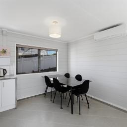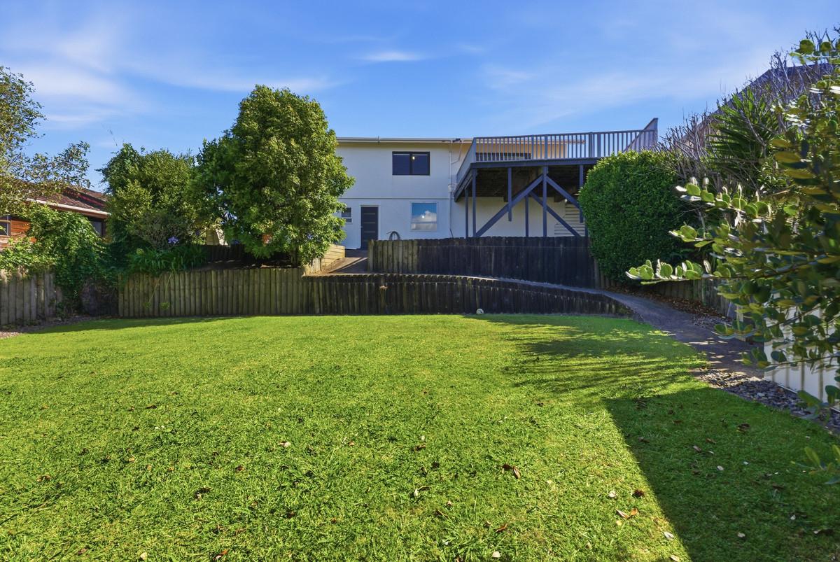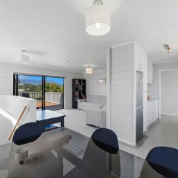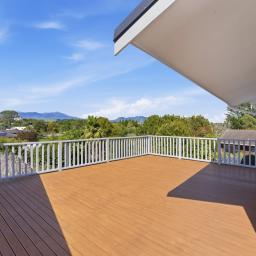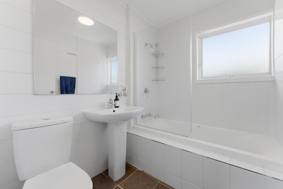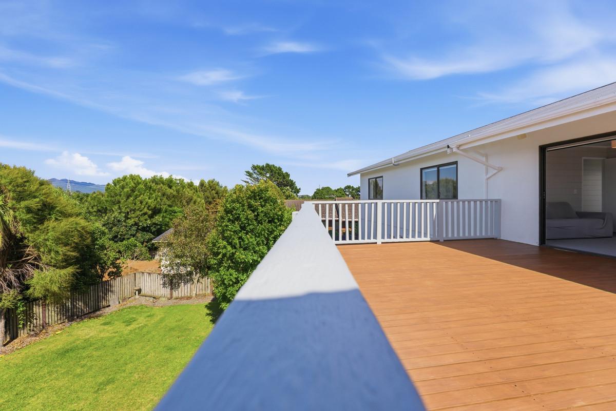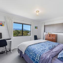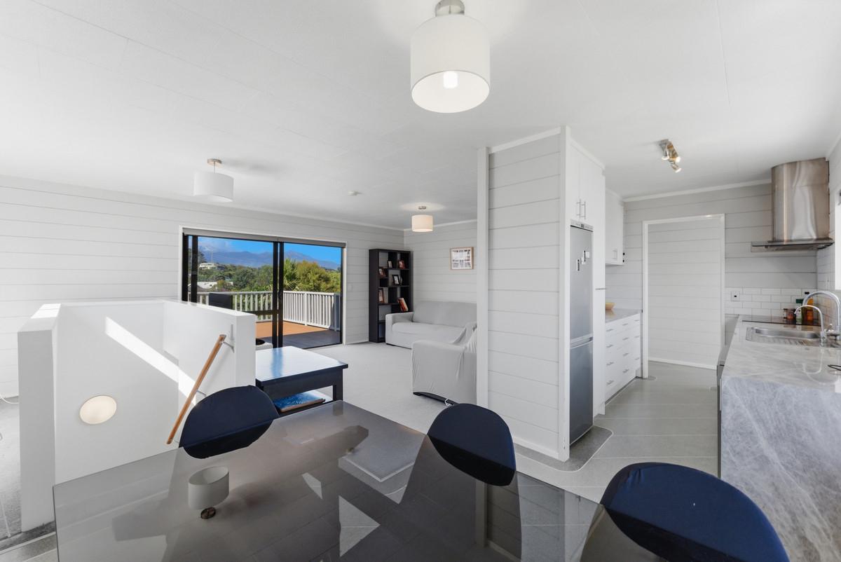 Upstairs offers effortless single-level living, where open-plan spaces and a light-filled lounge frame the outlook beautifully, drawing it into the heart of the home. Expansive decking extends the living outdoors, creating a sun-soaked setting for entertaining while soaking in those epic views. The crisp white kitchen connects easily to a fully fenced lawn bordered by raised garden beds - ideal for children, pets, or pottering in the sun. The master bedroom also enjoys a stunning mountain outlook, and a further two good-sized bedrooms are all serviced by not one, but two family bathrooms.