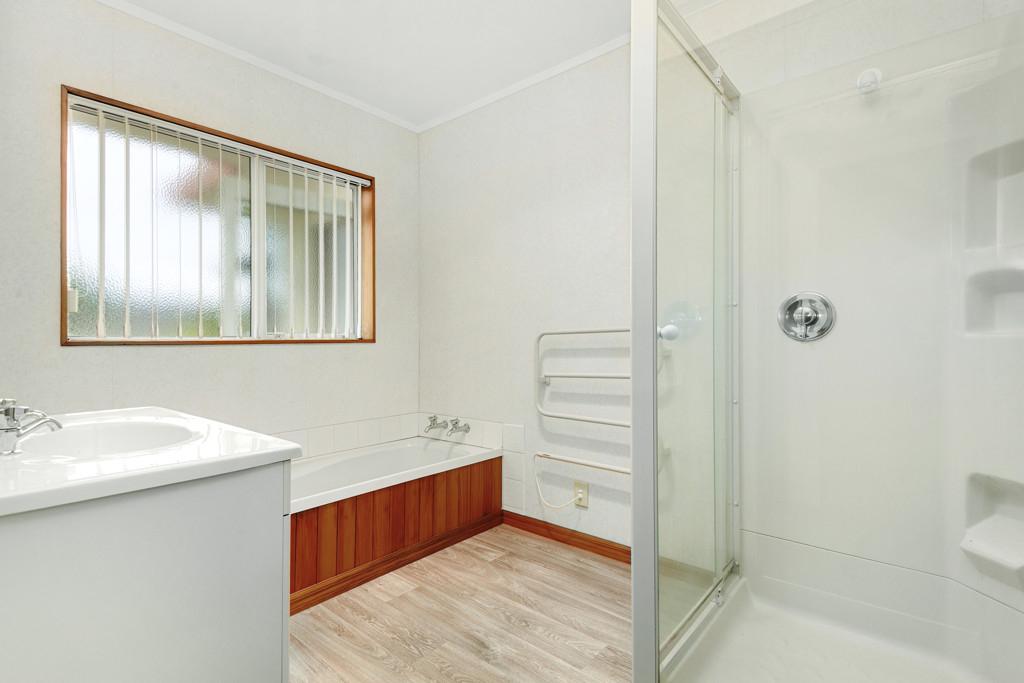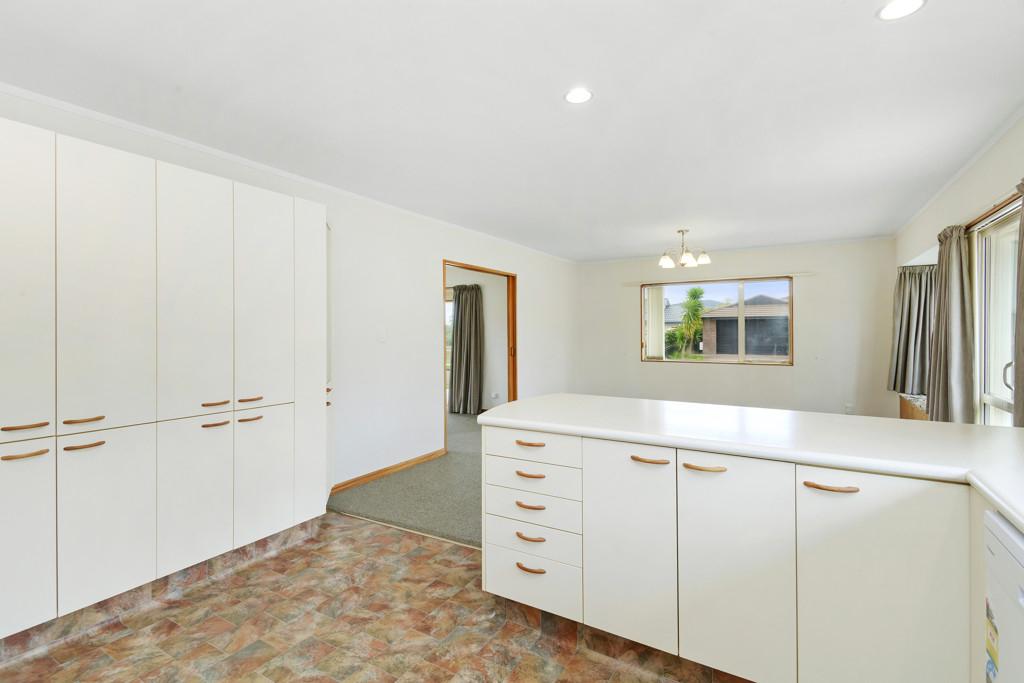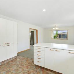 The kitchen is well-appointed with an under-bench oven, gas hob, extractor, pantry and extensive cabinetry. The benchtop extends for casual seating and social connection.
