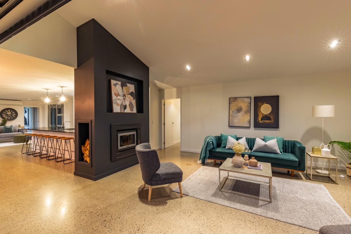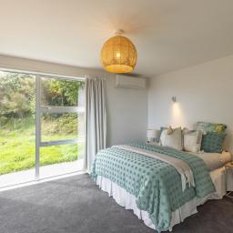 Comfort is assured year-round with double glazing, a wood burner, and three heat pumps. Polished concrete floors enhance the main living areas — ideal for families and pets — while all bedrooms enjoy the luxury of new carpet throughout.