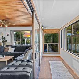 Well maintained and cared for, the main three bedroom home treasures character sarked ceilings and a neutral and warm colour palette throughout. The heart of the home connects beautifully to the outdoors by way of the expansive decking area, cleverly positioned for the view, the sun and family entertaining.