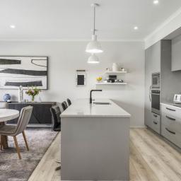 Showcasing 2.7m High Stud ceilings, light-filled, open-plan living anchored by a high-spec kitchen all of which flow seamlessly to the dining and family areas. An additional formal lounge provides flexibility for more intimate or refined occasions. Stacker doors in your family living and formal lounge open to beautifully landscaped gardens and a sun-soaked patio overlooking the lake.