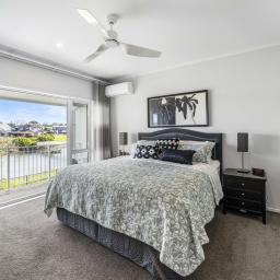 Cleverly configured with four bedrooms (or three plus office), the upstairs layout includes three generous bedrooms all of which spill out to a balcony capturing uninterrupted reserve and lake views, while a flexible fourth bedroom or home office adds versatility downstairs.