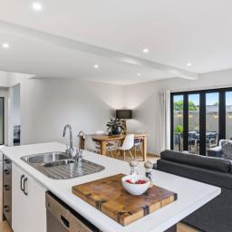 Positioned just moments from the shoreline & scenic coastal walkways, this impressive Paraparaumu Beach residence offers generous proportions, superb sun & captivating sunset views toward Kapiti Island. Orientated to the west-north-west, the property captures wonderful natural light throughout. A dramatic high-stud entrance foyer creates an immediate sense of space and occasion, this architectural presence continues throughout, where quality finishes and generous scale define the living areas. An elegant formal lounge, flows seamlessly to the family dining area, a smart contemporary kitchen provides a well-designed social hub where bi-fold doors open to a private patio terrace from both living areas, perfect for relaxed entertaining & summer barbecues. Upstairs, the master suite provides a peaceful retreat complete with luxurious ensuite - enjoy fabulous sunsets from the private balcony deck. 3 further bedrooms on the ground floor are complimented by the family bathroom with luxurious spa bath. An int/acc 2 car gge, off street parking and private easy-care established gardens together with the private courtyard where you can add your own spa pool to relax at the end of the day are just some of the outstanding features of this home.