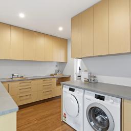 - Well-appointed designer kitchen with large walk-in scullery that cleverly doubles as a generous laundry