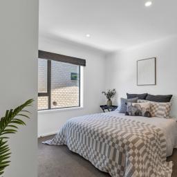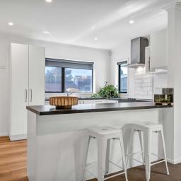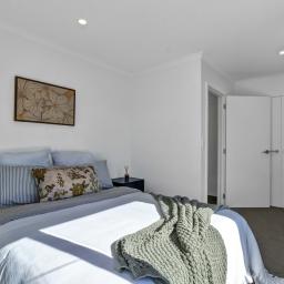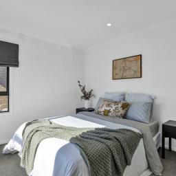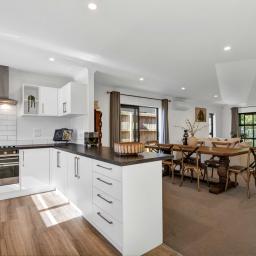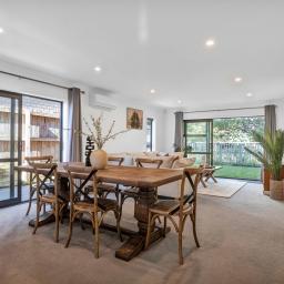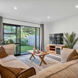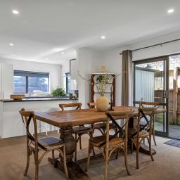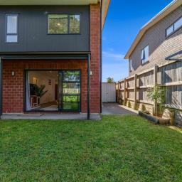 Built in 2021, the home offers a cosy open-plan living, dining, and kitchen area, along with a discreetly positioned laundry and a guest toilet with vanity on the ground floor. The kitchen features a cooktop with an under bench oven, range hood, stainless steel sink, dishwasher, ample storage space and a peninsular benchtop with breakfast bar for casual dining. Two stacker doors - one from the dining area and another from the living room - open out to a private, fully fenced backyard, creating seamless indoor-outdoor flow.