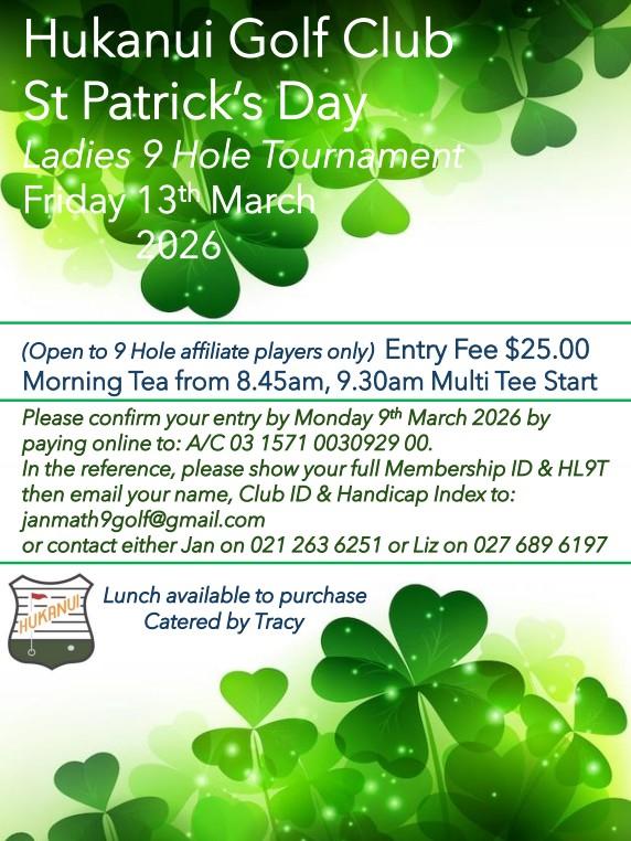 Phone 8243784 or email: hukanuigolf@xtra.co.nz