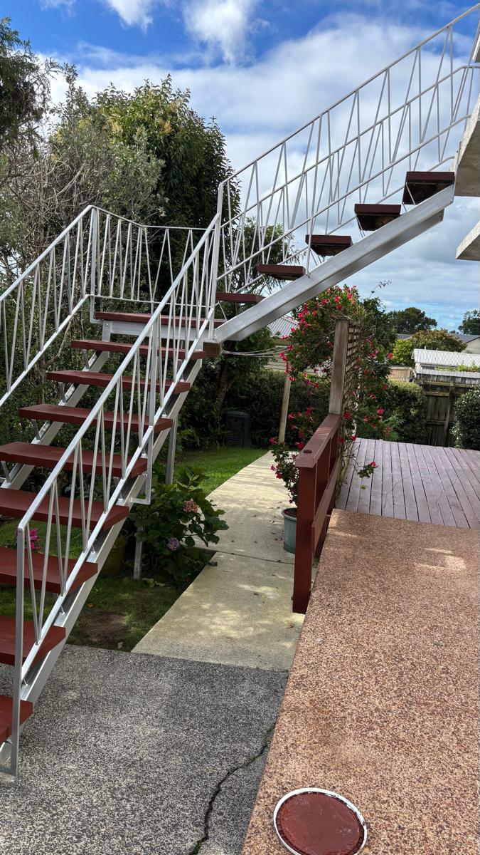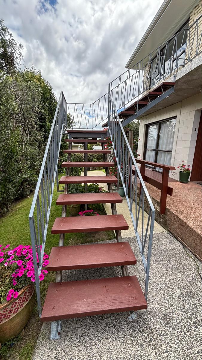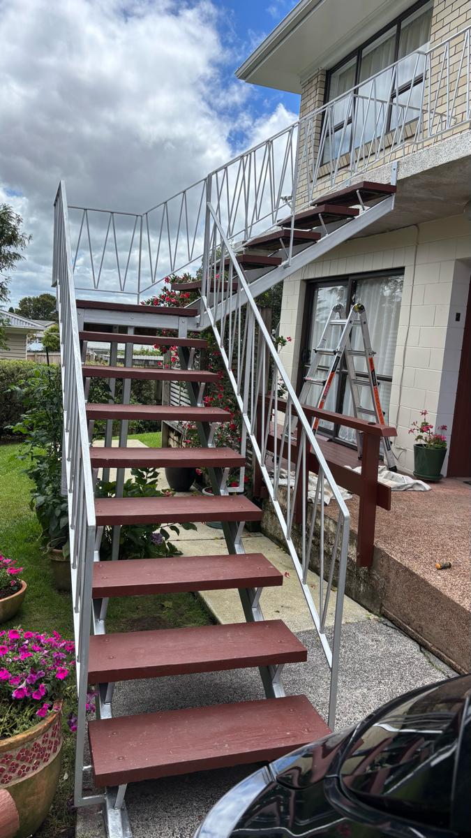 Another job completed, refreshing the steel staircase and timber steps, including proper surface preparation and rust treatment to ensure a clean, long-lasting finish.