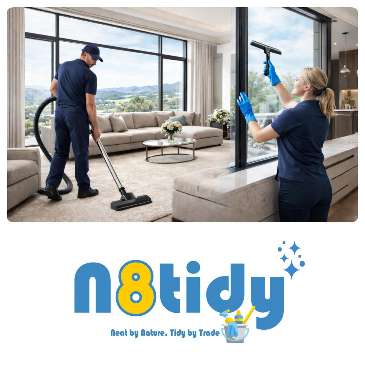 β’ Residential clean-ups, including windows, carpet … View moreWhile many take a break, N8tidy is here to help. Whether itβs outdoor work or getting your home fresh and tidy for the holidays, weβve got you covered.