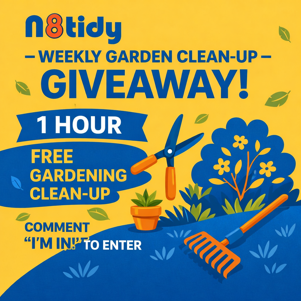 Our lucky neighbours will win 1 hour of free gardening/yard clean-up from n8tidy this week.