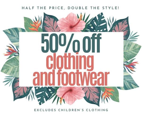 β¨ Don't miss our 50% OFF CLOTHING & FOOTWEAR SALE β¨