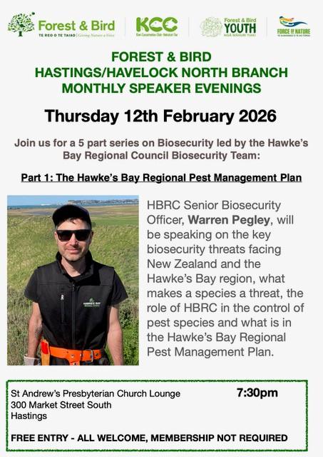 Come and hear HBRC Senior Biodiversity Manager Warren Pegley talk about pests (plants and animals) affecting our region.