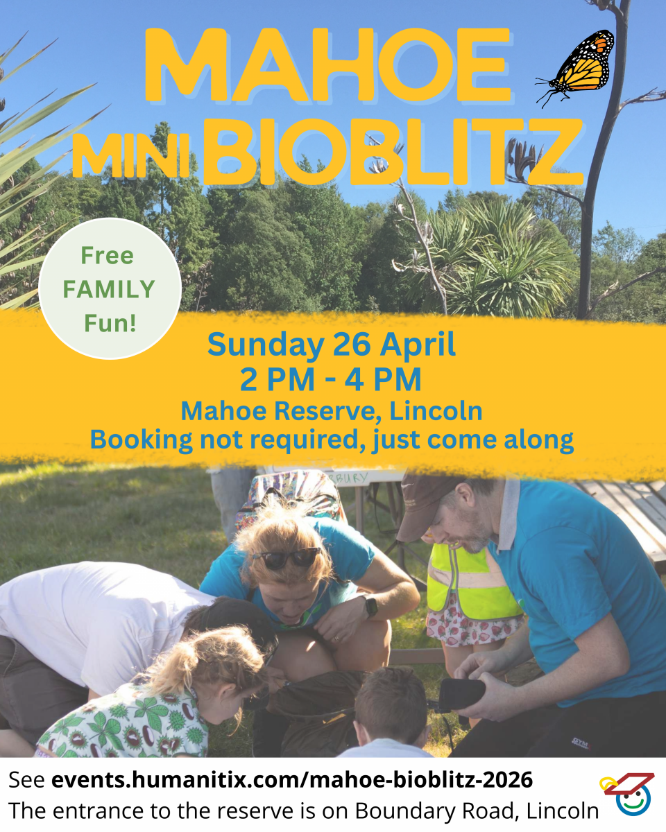 Join us for a Mini BioBlitz at the Mahoe Native Reserve in Lincoln as part of the City Nature Challenge Ōtautahi. You'll be on the hunt for anything that flies, grows, crawls and hides!
