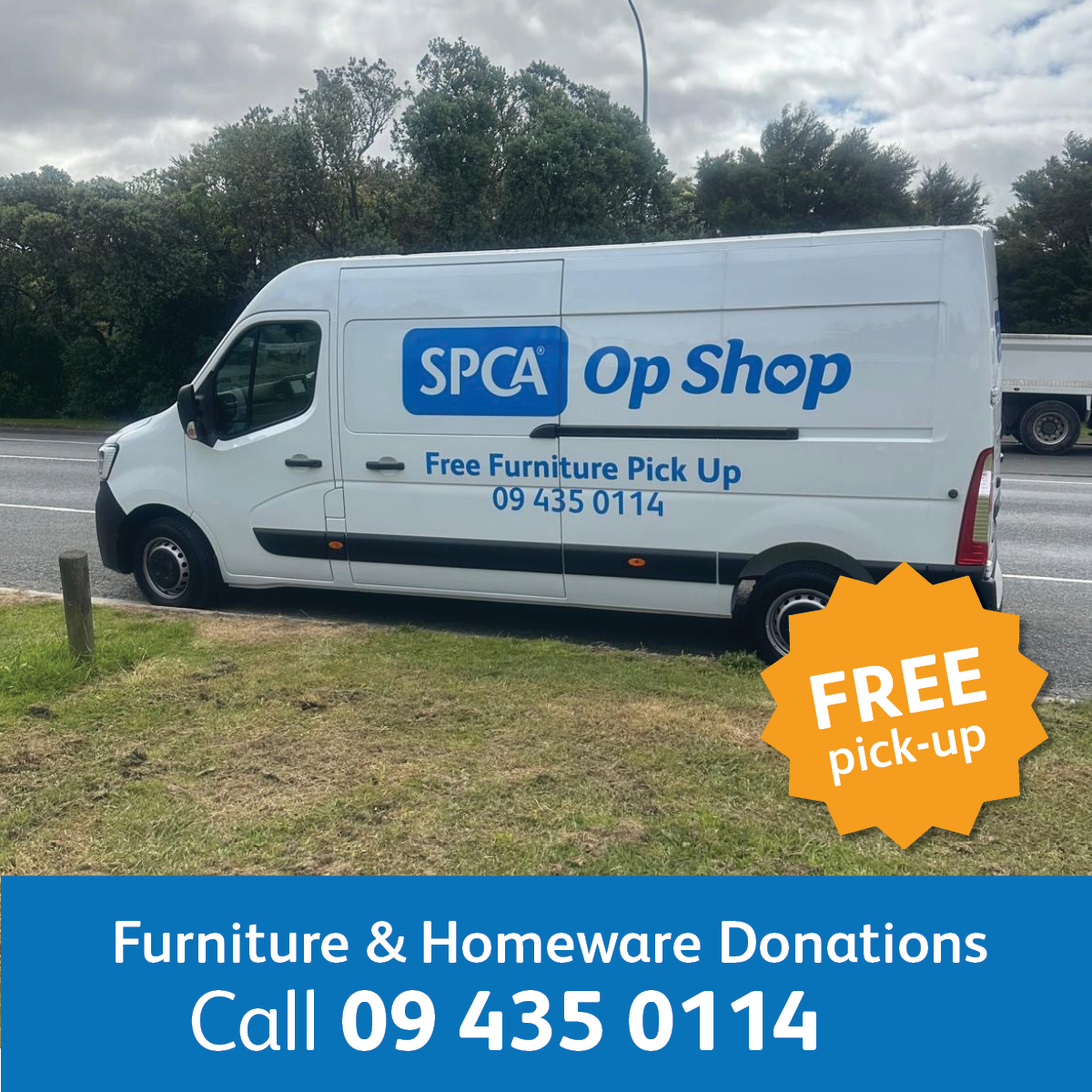 If you have furniture or large household items to donate, our SPCA van service offers free collection across Whangarei and Kamo, making clearing out your home and donating easy and hassle-free.
