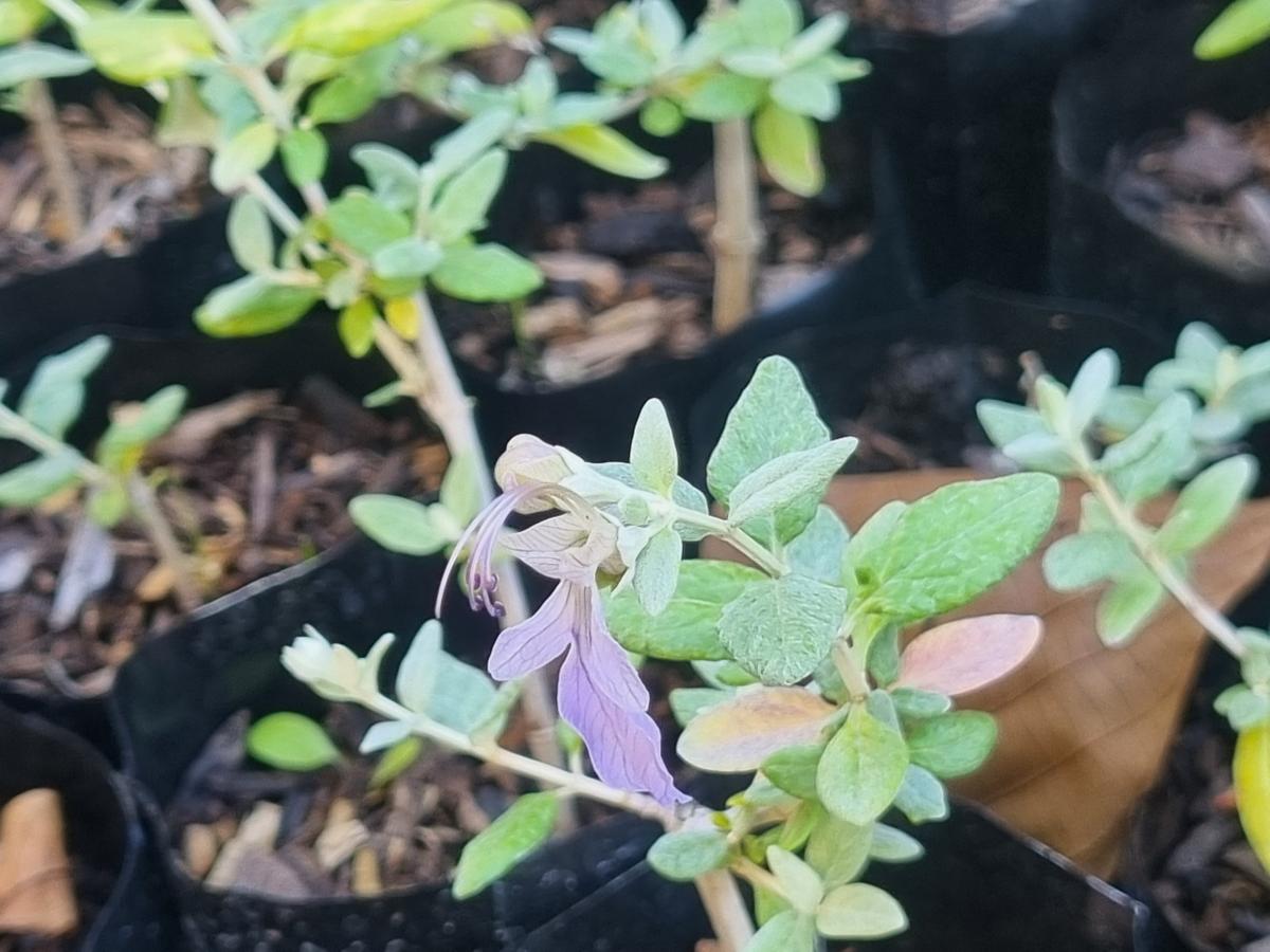 Good-sized Teucrium plants ready for planting now. Fast-growing, spreading, drought-tolerant grey shrub. Attractive hedge with pale-blue bee-attracting flowers. Looks great as a trimmed shrub, low shelter or topiary. Great for coastal sites. Low maintenance. Lots available. $3