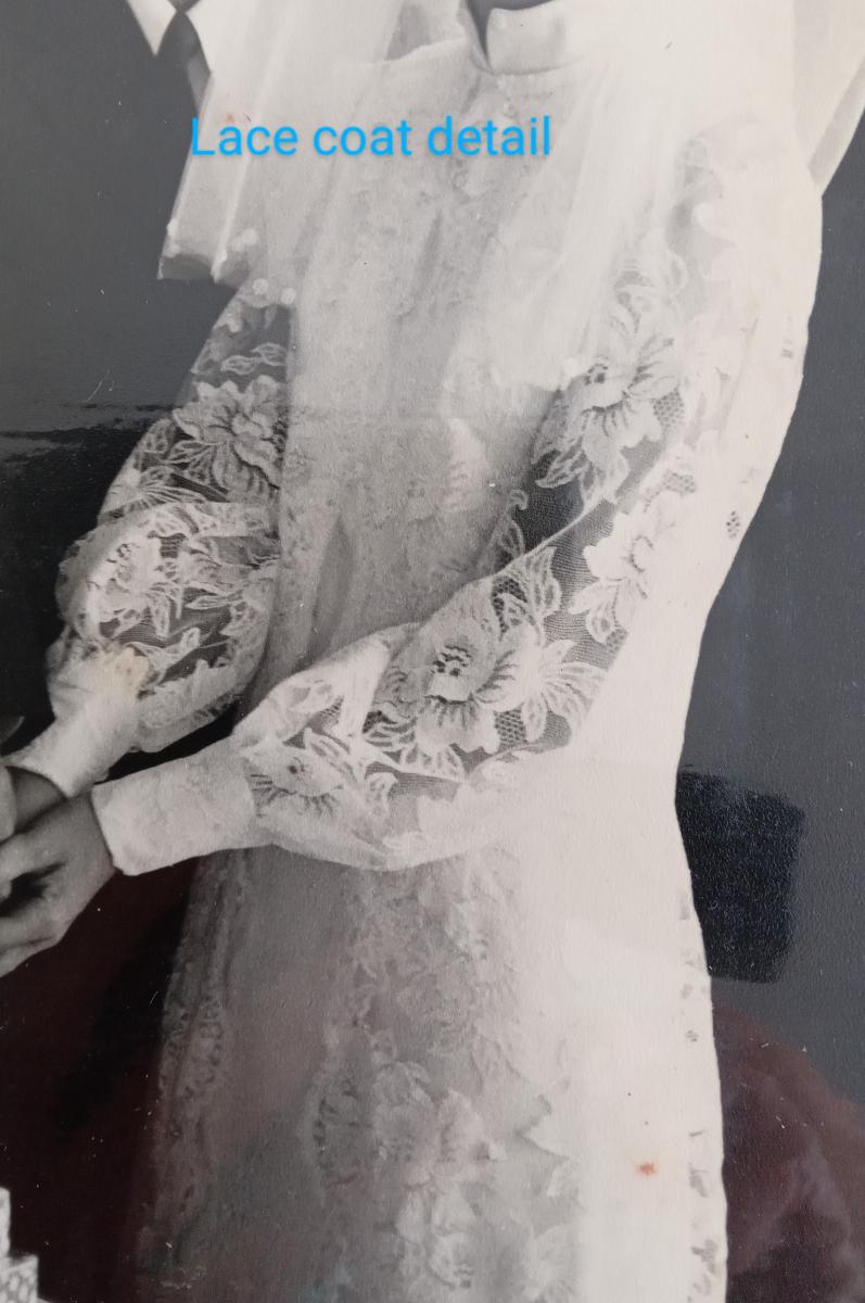 Size 14/16. Underneath - plain, A-line dress with Manderin neckline. On top - beautiful, long sleeved lace redding coat, covered with diamantes, with a slight train. To view/pick up - Rangiora.