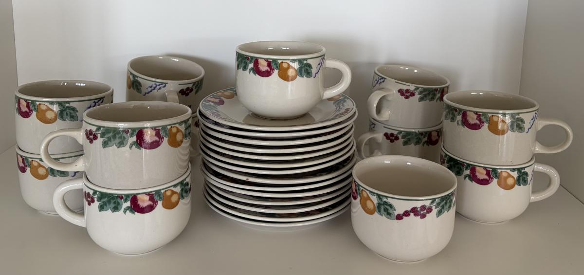 12 cups and 14 saucers — a nice full set with a couple of extras.