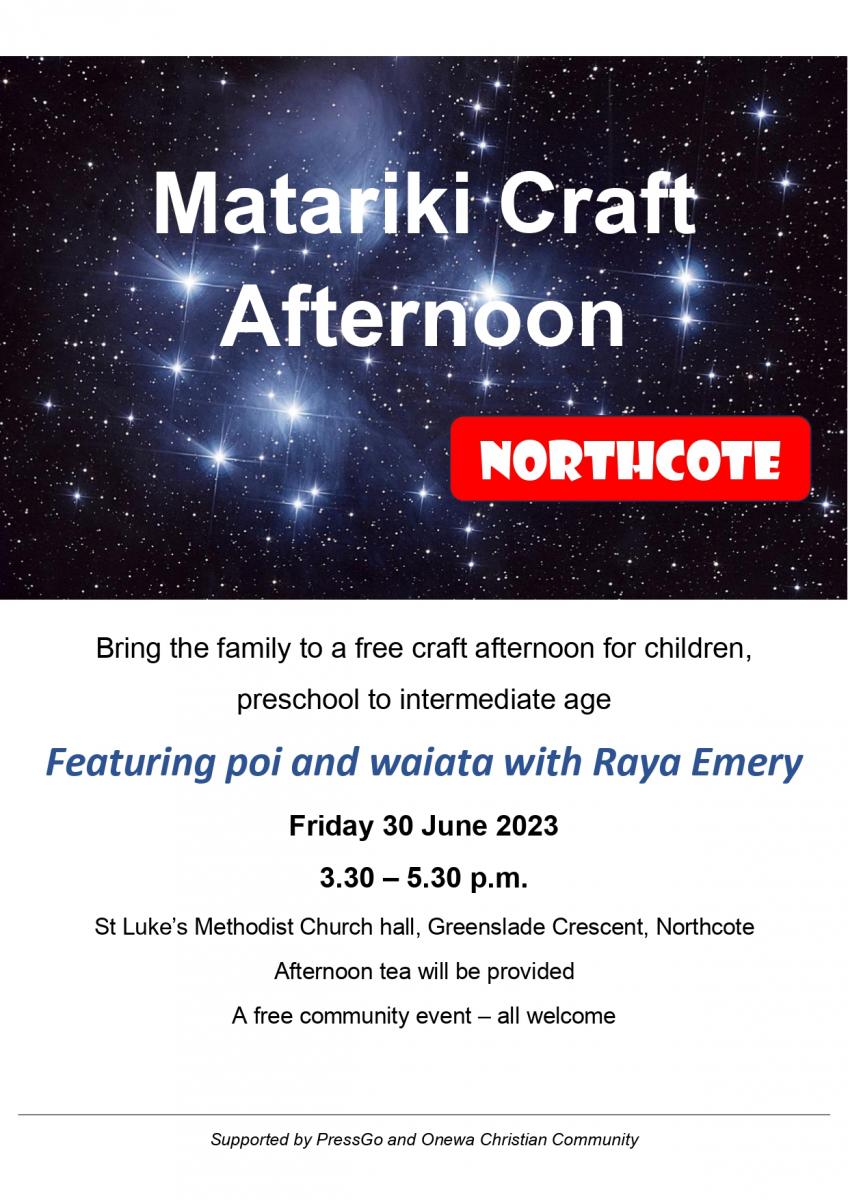 (Supported by PressGo and Onewa Christian Community)