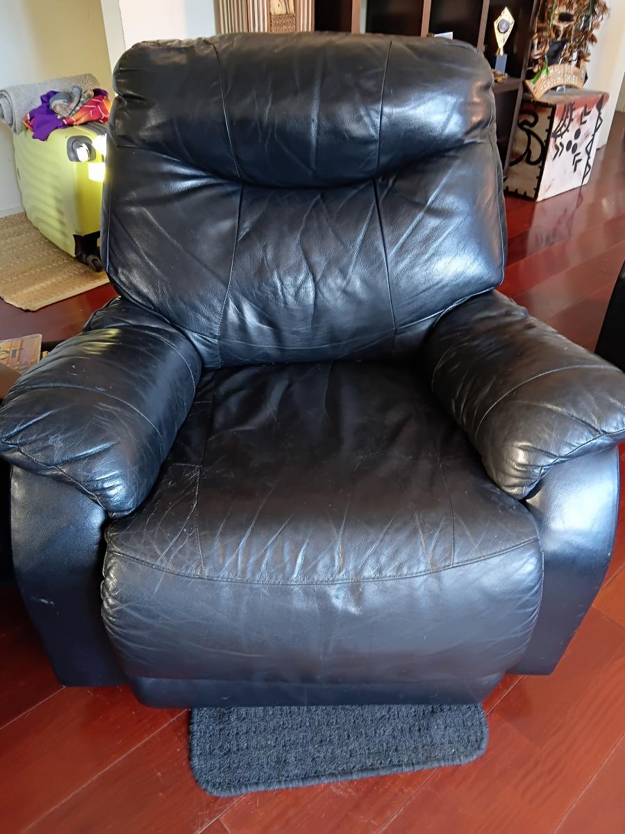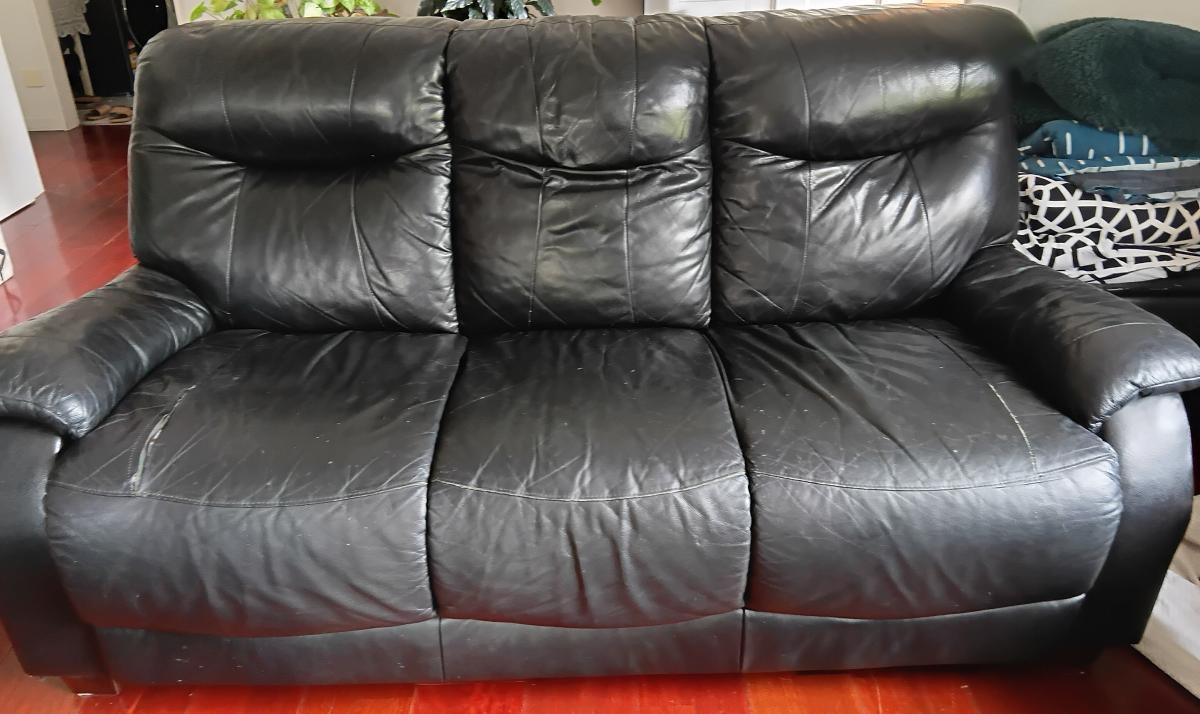 2x 3seater 1 is leather and the other is vinyl. 1 recliner but the puller isn't working but you can manually lift it up.