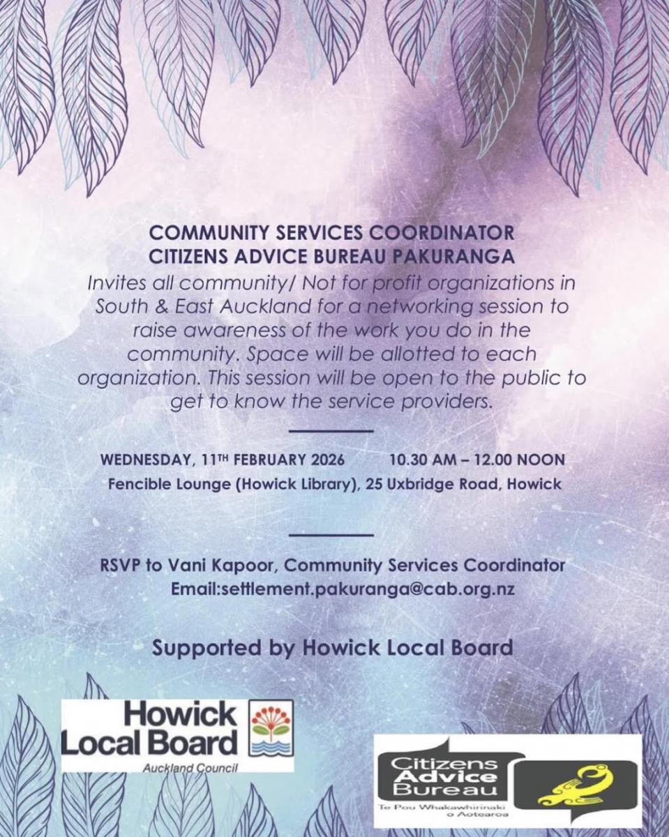 Calling all community / not for profit organisations in South & East Auckland for a networking / idea sharing session.
