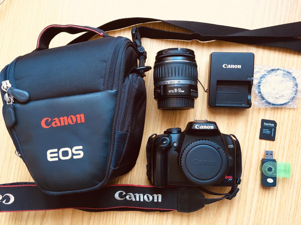 Everything you need (Camera Rebel XS, Lens, SD card, Card reader, Charger, strip, bag, + UV lens protection)