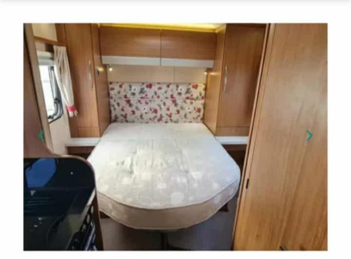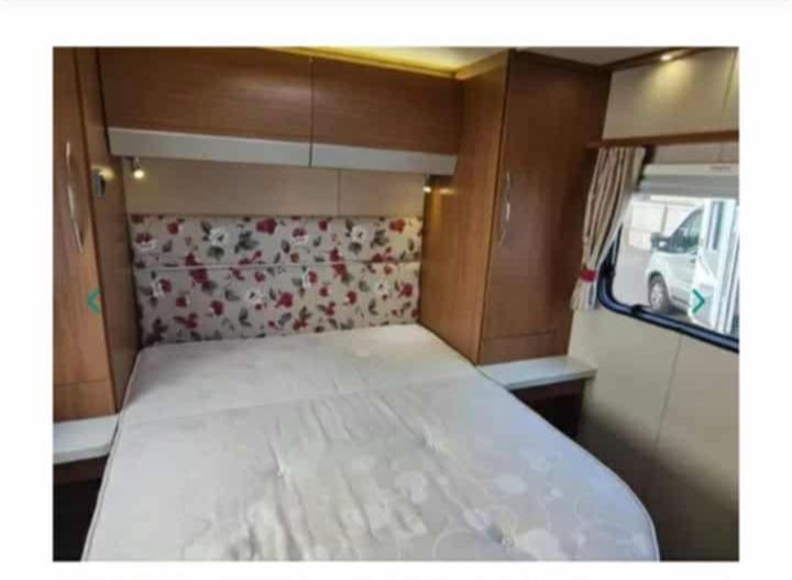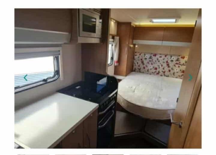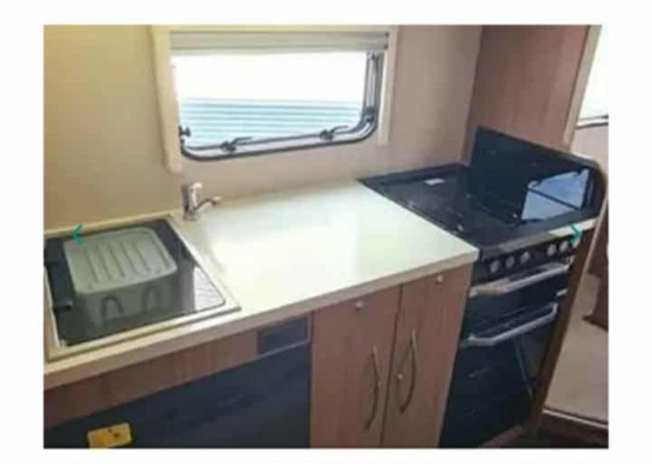 The kitchen has an excellent prep area, large sink, electric hot plate and 3 gas-burning hobs full size Thetford gas cooker and grill. There is pull up post with three 240v sockets, 800w microwave, 96 litre 3 way fridge with freezer box and a 2-way fan. There is good above and below.