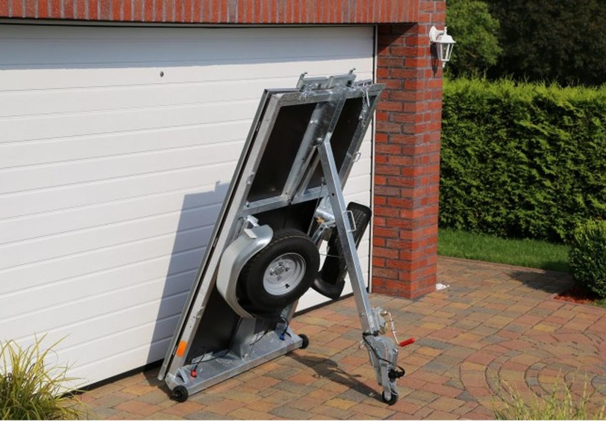 Stores safely in garage taking up only 38cm from wall, that's less that a bicycle.
