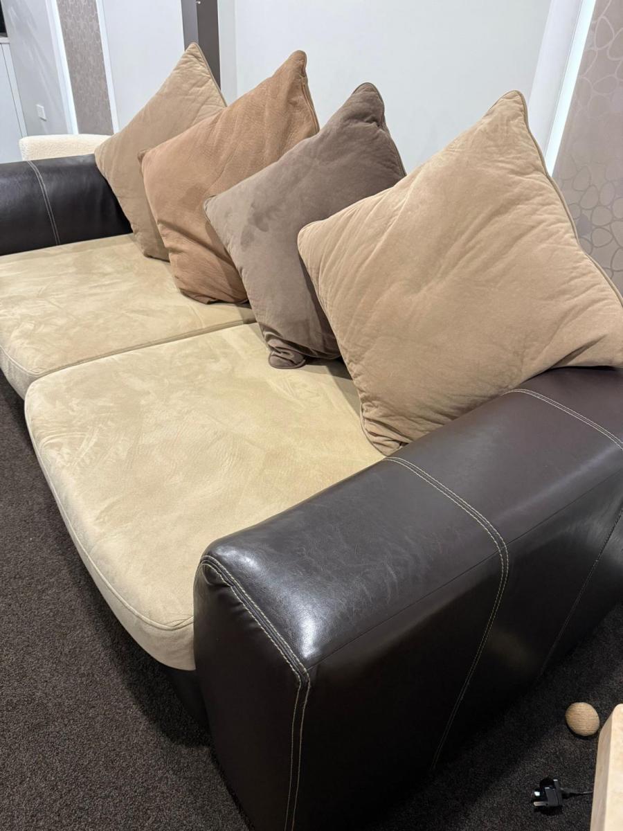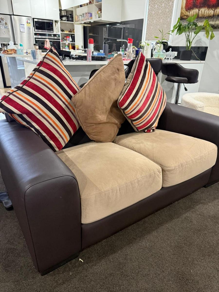 We are selling 3 sofas. One is 2 seater and other 2 are 3 seaters. Body is of leather and seats are of treated cloth. Seat cushions ae still very hard. No chip or strains. Coming for kids free, pets free and smoke free family. The price is of one sofa. You can offer for all 3 also. Buyer to pick up… View moreWe are selling 3 sofas. One is 2 seater and other 2 are 3 seaters. Body is of leather and seats are of treated cloth. Seat cushions ae still very hard. No chip or strains. Coming for kids free, pets free and smoke free family. The price is of one sofa. You can offer for all 3 also. Buyer to pick up from Greenlane, Auckland
