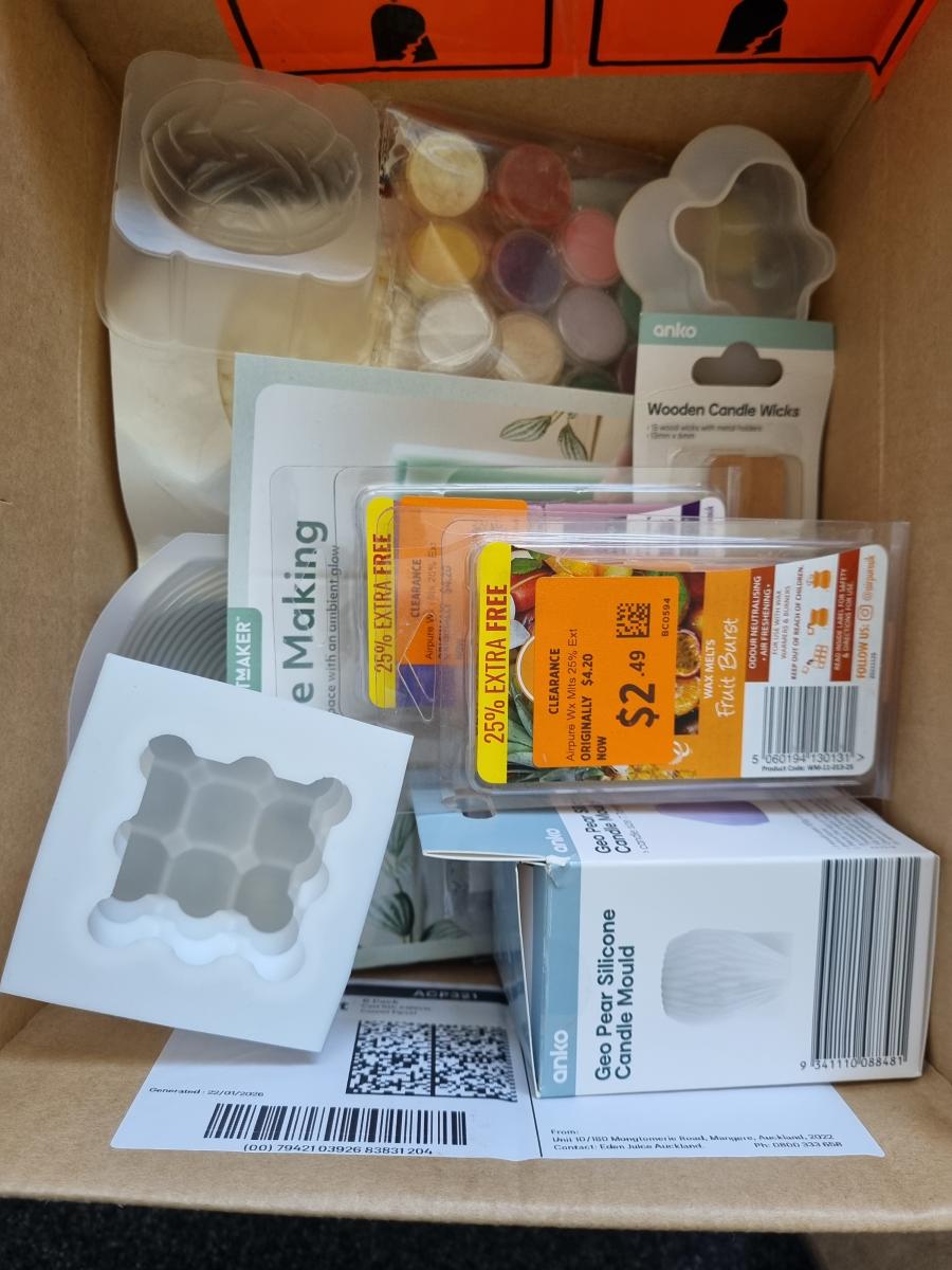 Bought this and used it once includes wicks, wax melts, wax, melting pot, powder dyes and 2 molds. If interested please txt 0211751679