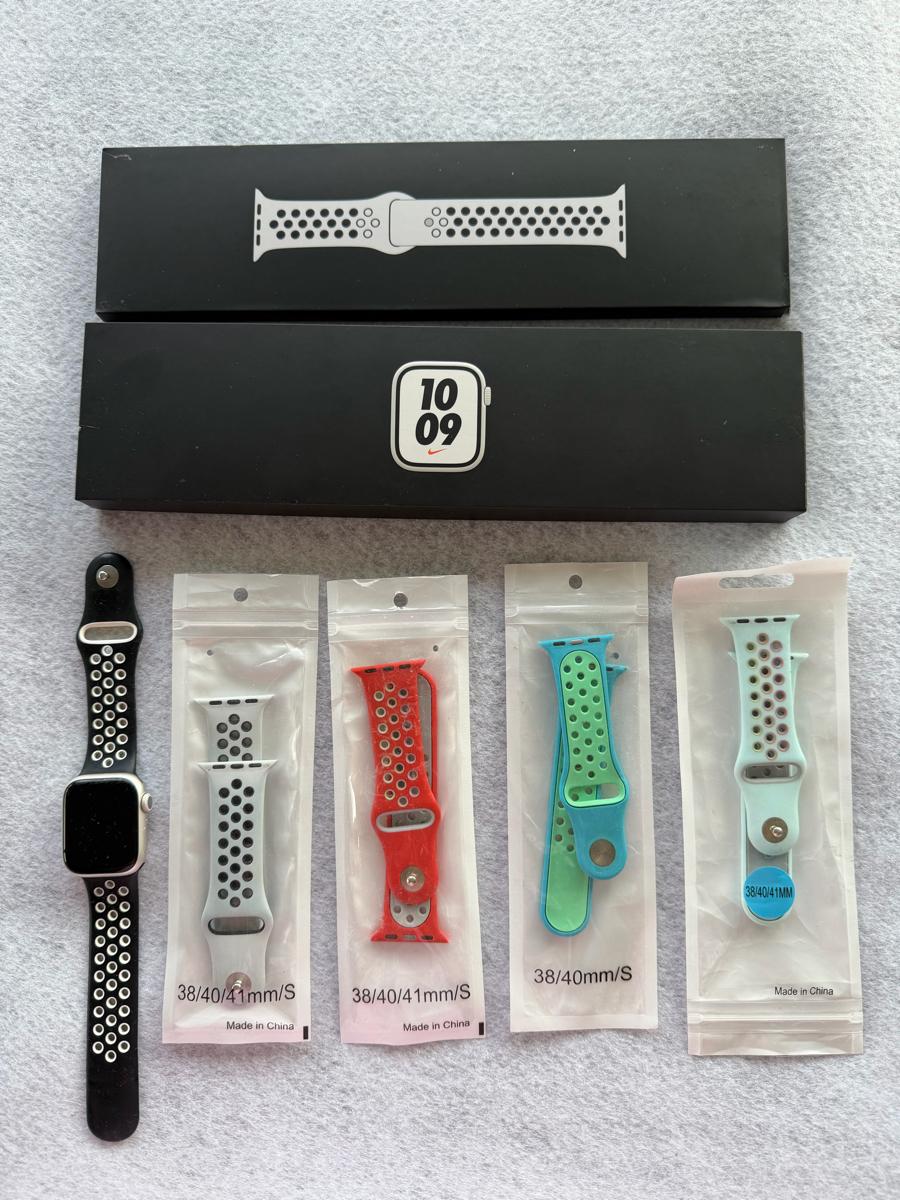 IWatch series seven designed for athletes by Apple and Nike. Includes boxes and five bands.
