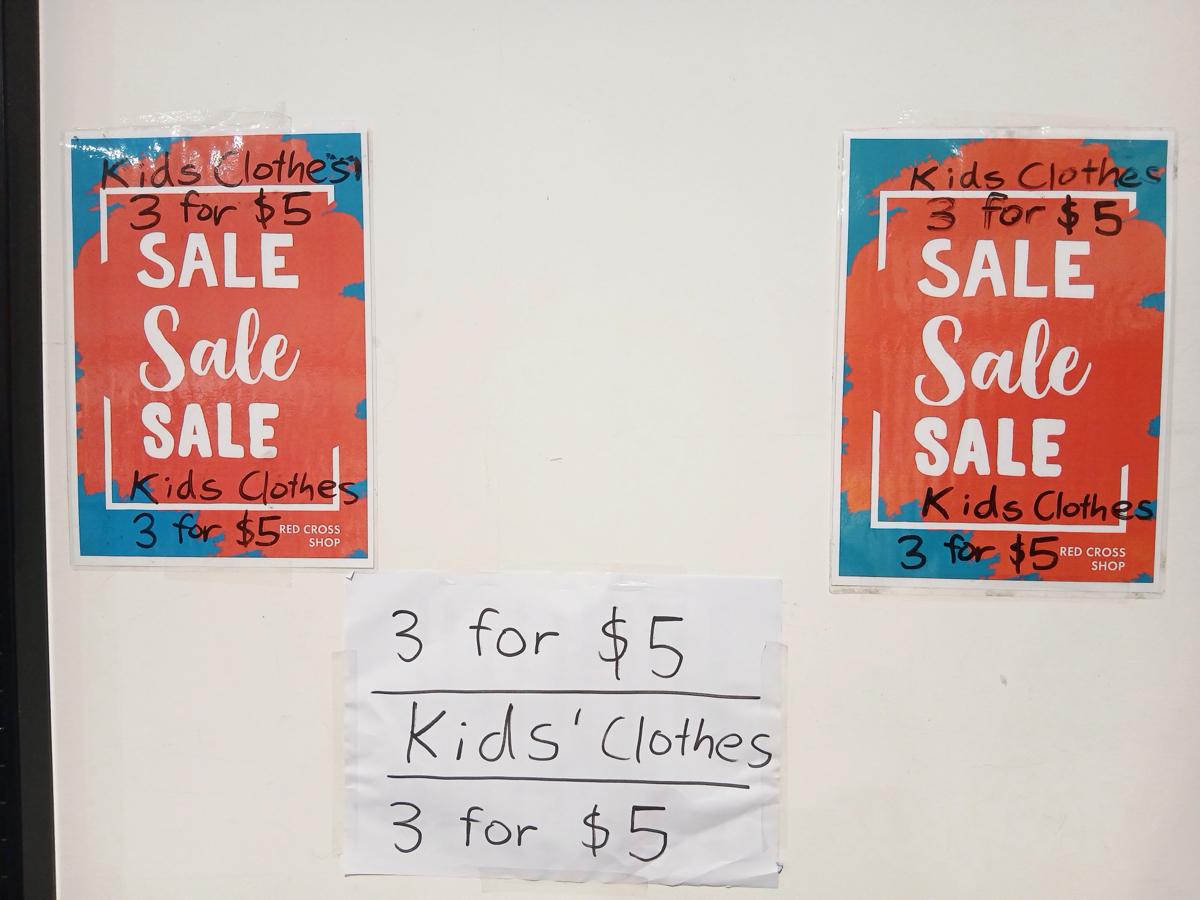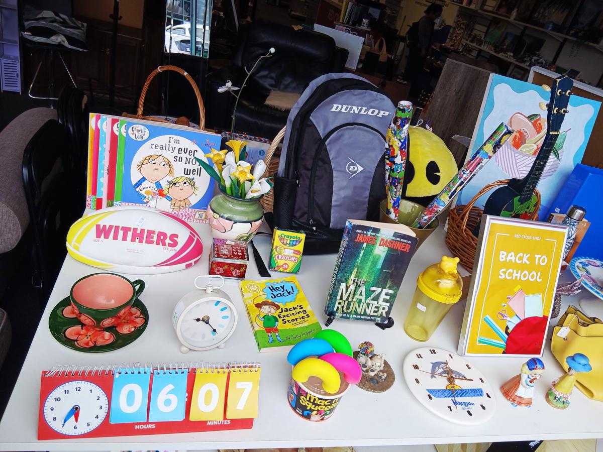 3 for $5 Kids' Clothing Sale at The Red Cross Shop Wairau Park! Thank you to our high school student Maxine for creating a colourful 'Back to School' display this week 🎨