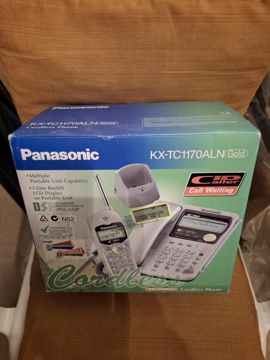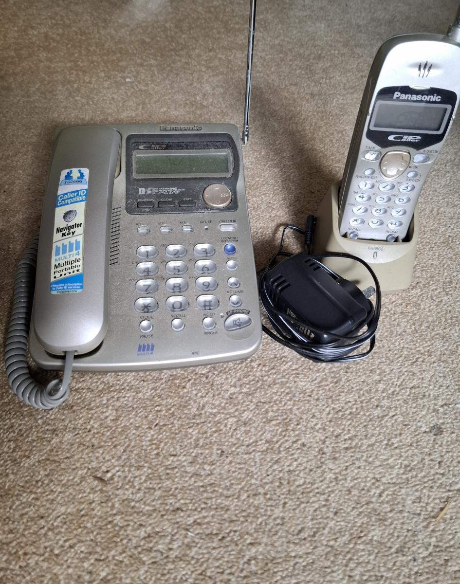Panasonic home phone includes 1 wired base unit, 1 remote handset, and charger.