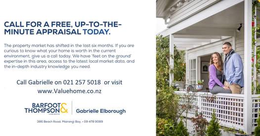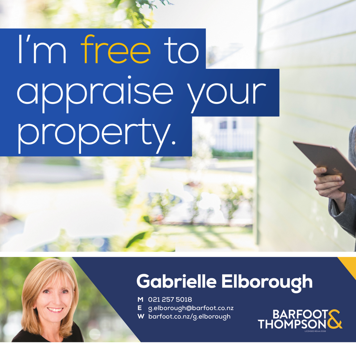 I am available to appraise your property. If you are selling on the North Shore of Auckland, call Gabrielle Elborough on 021 257 5018