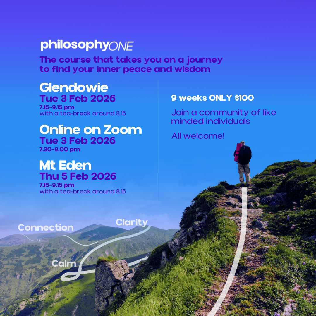 Our first term this year starts next week Tuesday February 3 and Thursday February 5. This course is designed for thoughtful people to discuss Mindfulness and Philosophy with like minded people. Tuesday at 268 West Tamaki Road, Glendowie or Thursday 27 Esplanade Road, Mt Eden. Start time 7.15 pm. … View moreOur first term this year starts next week Tuesday February 3 and Thursday February 5. This course is designed for thoughtful people to discuss Mindfulness and Philosophy with like minded people. Tuesday at 268 West Tamaki Road, Glendowie or Thursday 27 Esplanade Road, Mt Eden. Start time 7.15 pm. We can enrol you on the night but please arrive by 7 pm. Info 0800 610 539