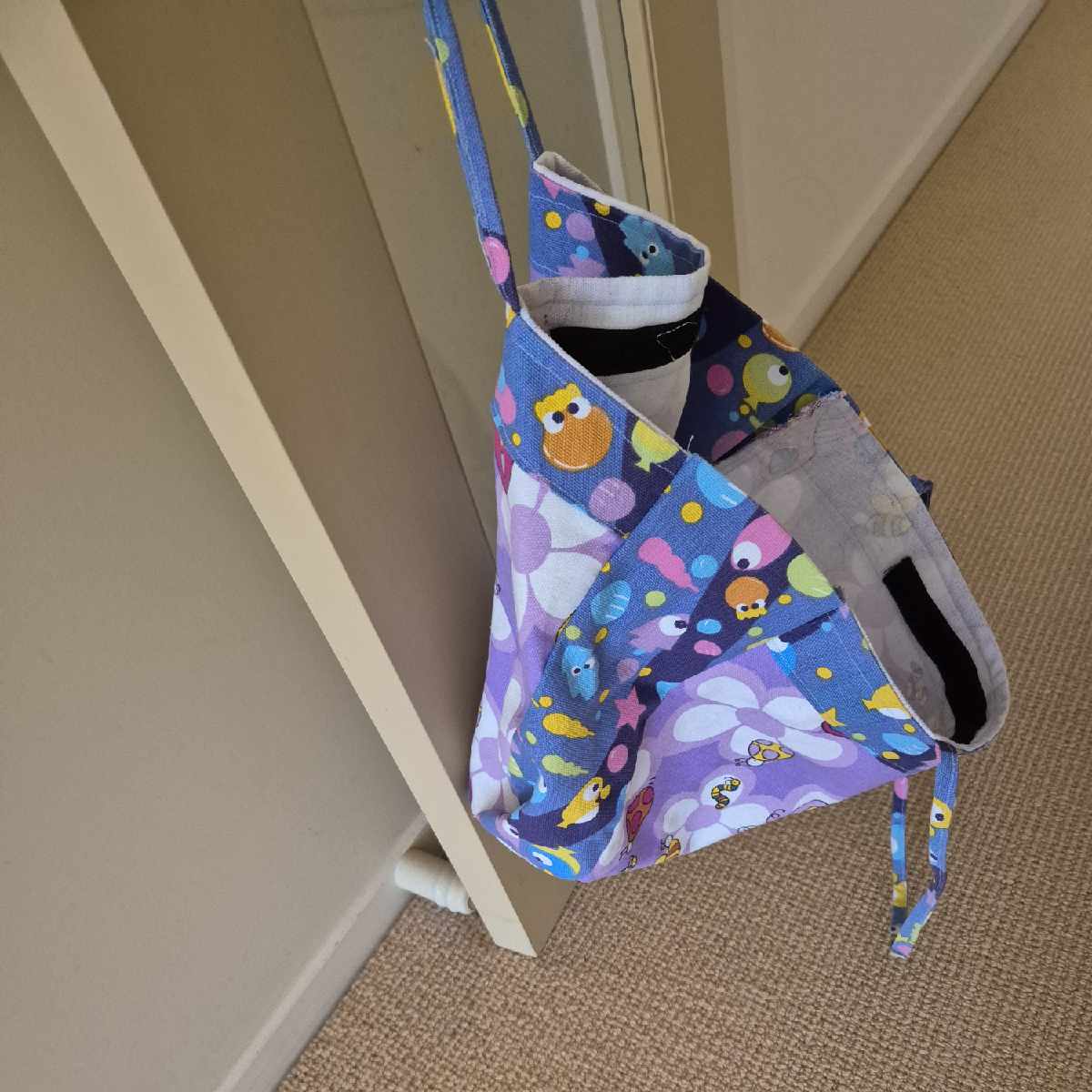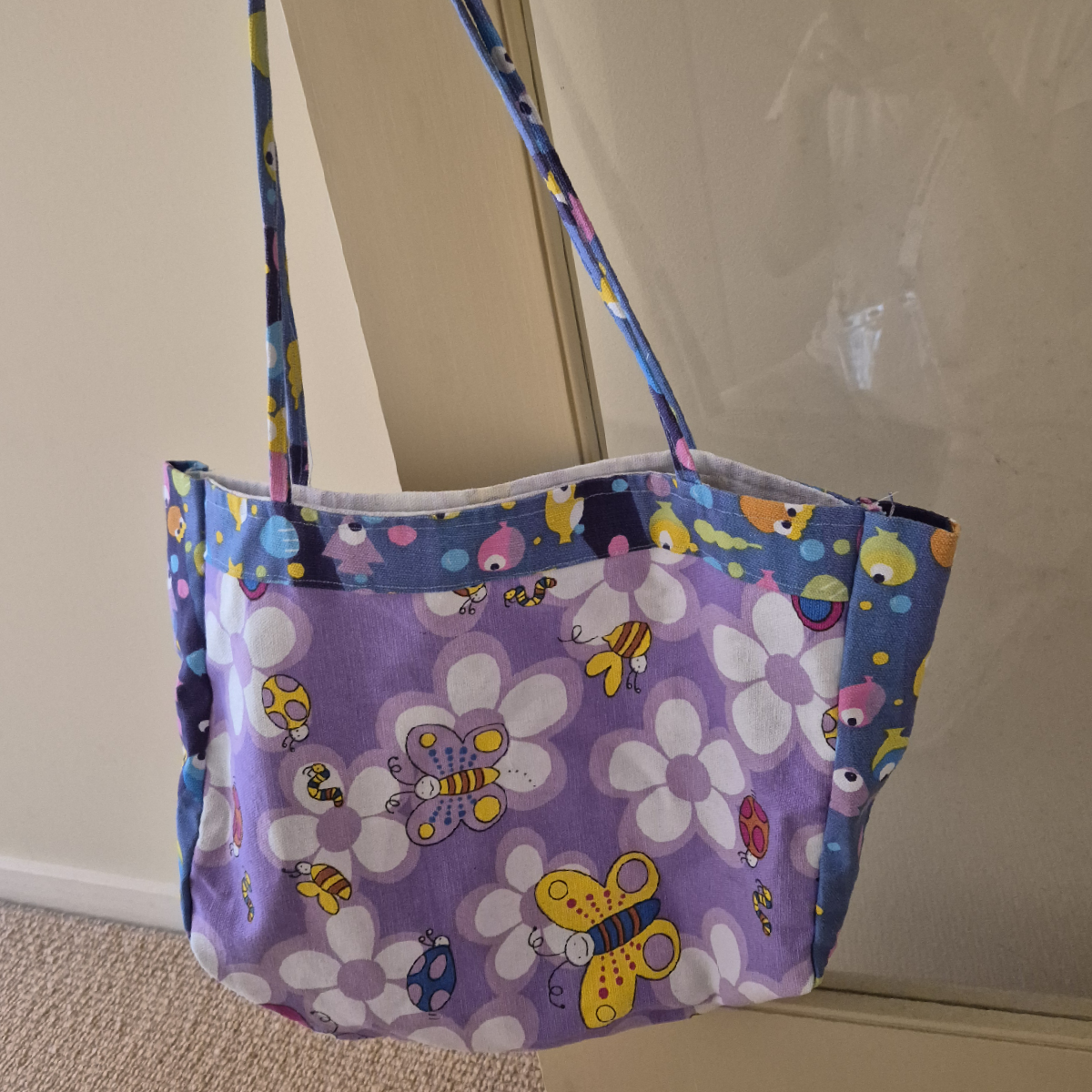 Hand made strong designer cotton bag with velcro lock in middle and big handle.