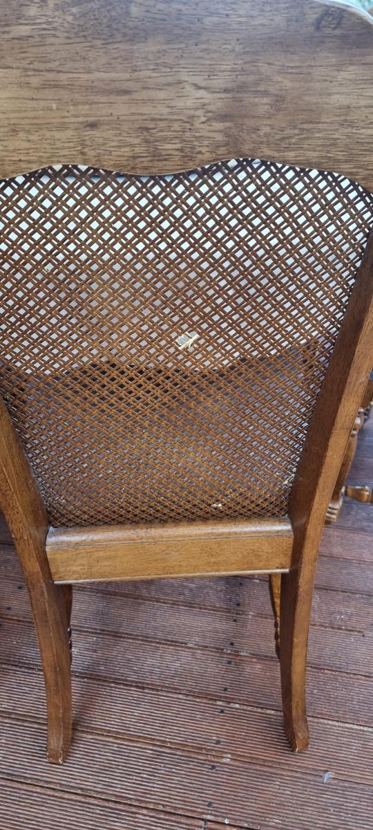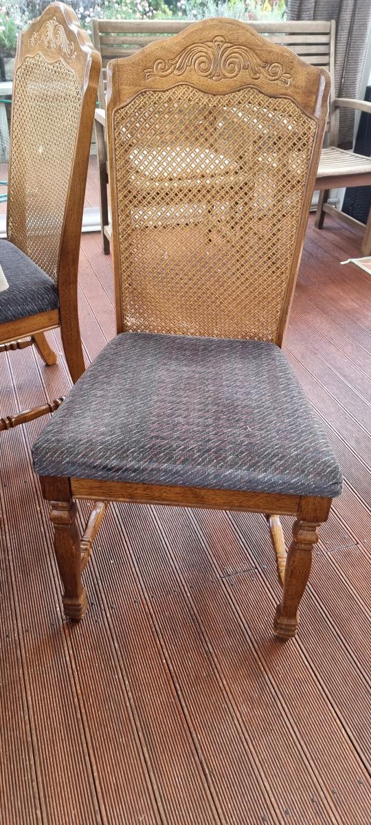 6 off dining chairs only, in good working conditions, one of the chairs has a hole in the backing, as in the photo, must pick up.