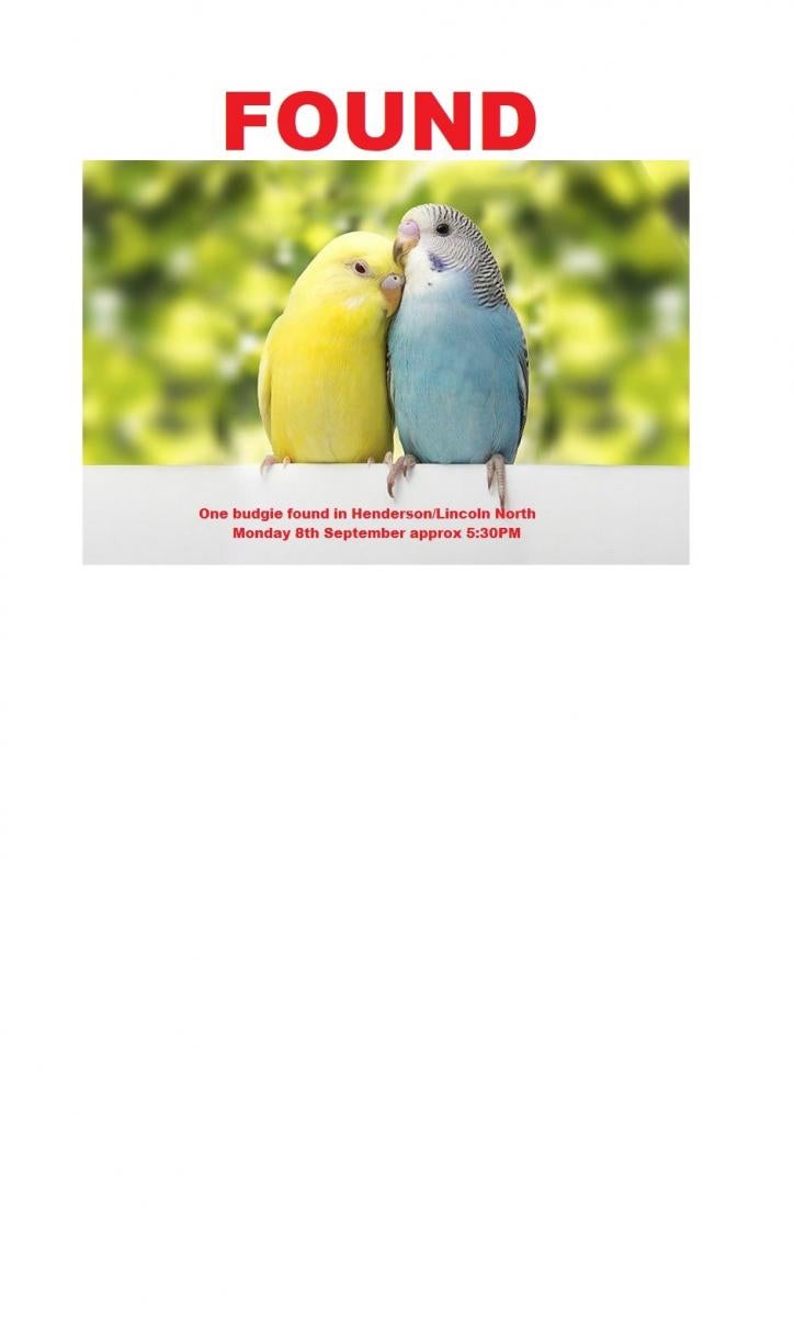 Are you missing a budgie? A very friendly female budgie has found us this Monday afternoon near Central Park Drive/Te Pai Place, Henderson. We know who ever is missing her will be devastated so are hoping her family will see this and touch base ASAP. Please call or text 021 979 689 if you are … View moreAre you missing a budgie? A very friendly female budgie has found us this Monday afternoon near Central Park Drive/Te Pai Place, Henderson. We know who ever is missing her will be devastated so are hoping her family will see this and touch base ASAP. Please call or text 021 979 689 if you are missing your budgie to identify her if she is yours.