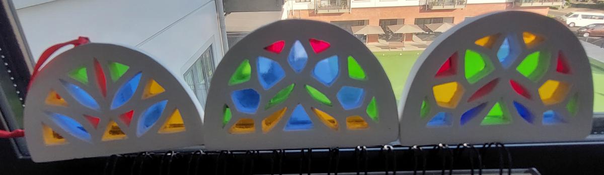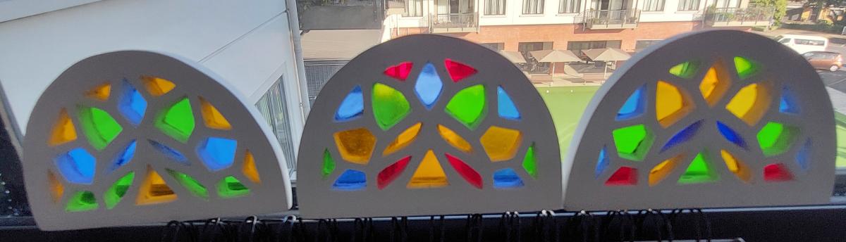 Mini stained glass windows.