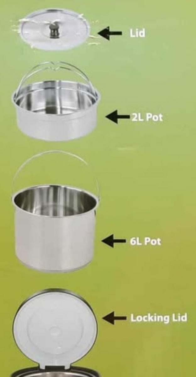 Larger pot is 6 litre.