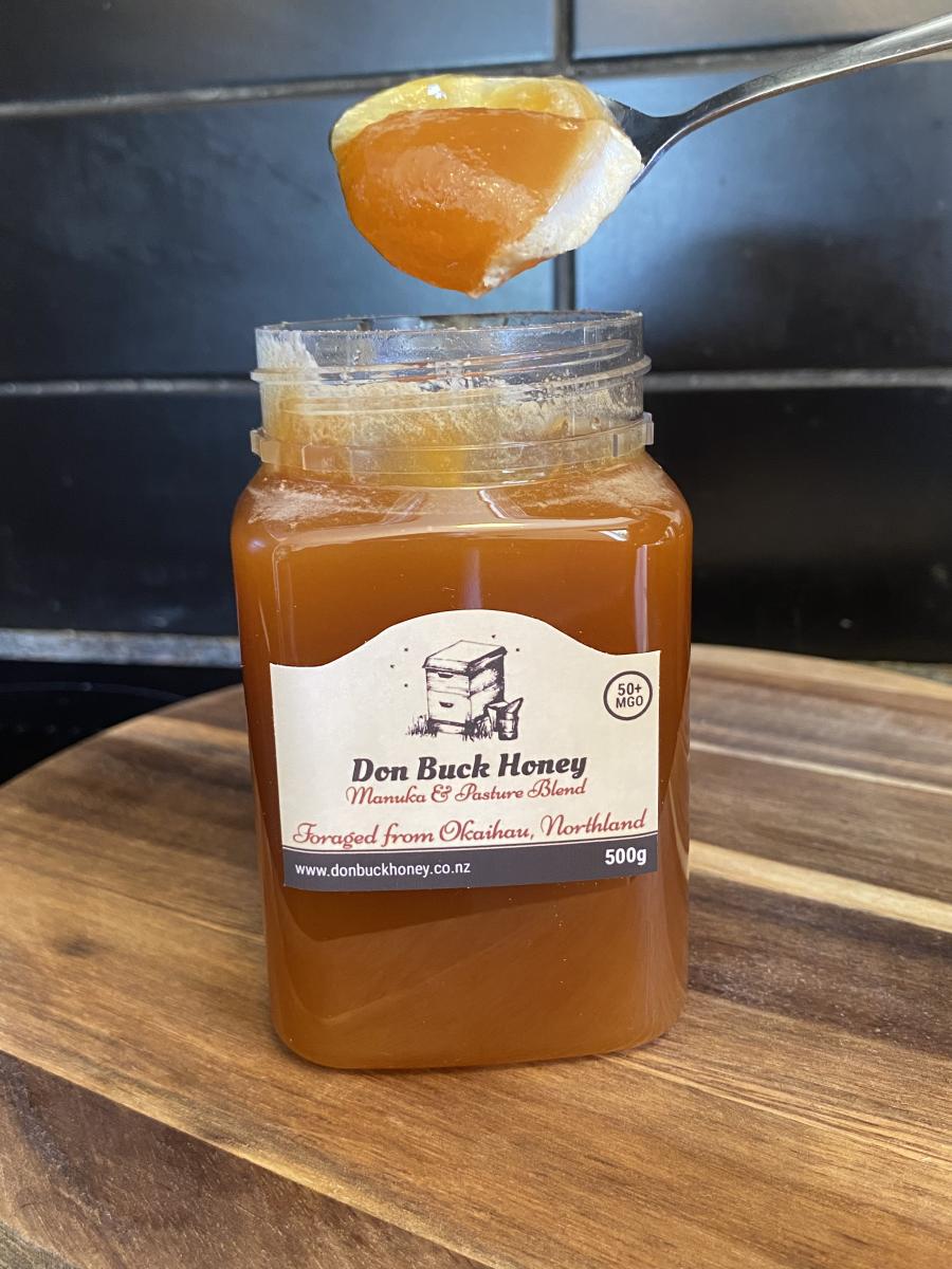 • Manuka & Pasture Blend 50+mgo 500g. Okaihau area, Northland. $16 each or six for $80.